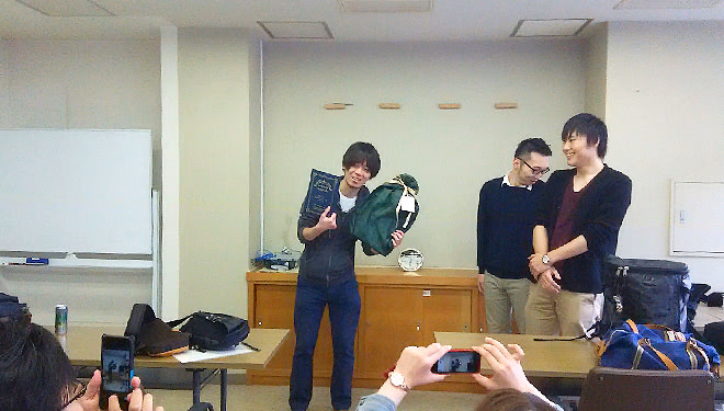 The presents (colored paper and MacBook case) presentation ceremony was held.