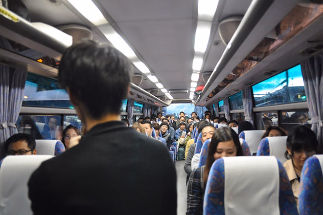 The bus was filled with a relaxed atmosphere thanks to Kanno's talk.