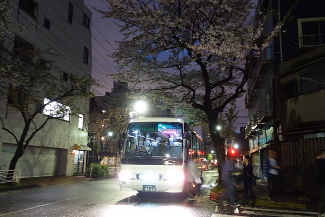 At 6 p.m., Monosus employees piled into the chartered bus arranged by the cherry blossom viewing committee.
