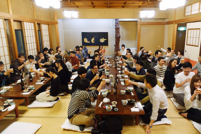 Kagawa from the creative department drinks too much and soon becomes sleepy.