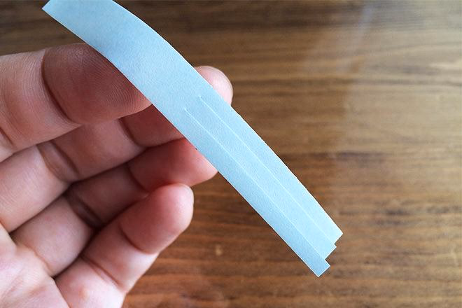 Divide the double-sided tape into three equal parts and use thin strips. For very small parts, it is a good idea to stick paper to the double-sided tape before cutting. This way, the shape will not be distorted and you only need to cut it once.