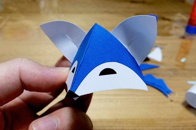 First, make the face to get the excitement going. Since it's a fox, imagine a thin face. When making a face, the first fold is important. If it's a round face, make the face using a ring as a base, but if it's a slim face like this one, start by folding it in half. I made it interesting by using blue as the main color, which isn't typical of a fox.