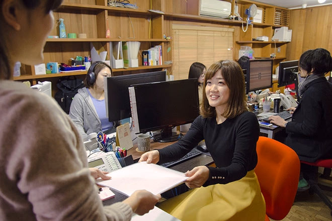 Also, we often sit next to each other, so we can discuss work details with each other or laugh together over trivial things, making for a comfortable work environment.
