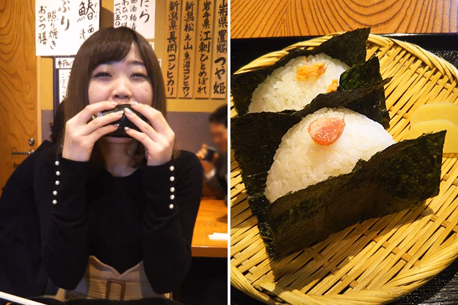 During my lunch break, I go to a nice restaurant and enjoy lunch. On this day, I was stuffing my face with salmon and salmon roe onigiri, and a combination of Nozawana and mentaiko onigiri. They look so happy!