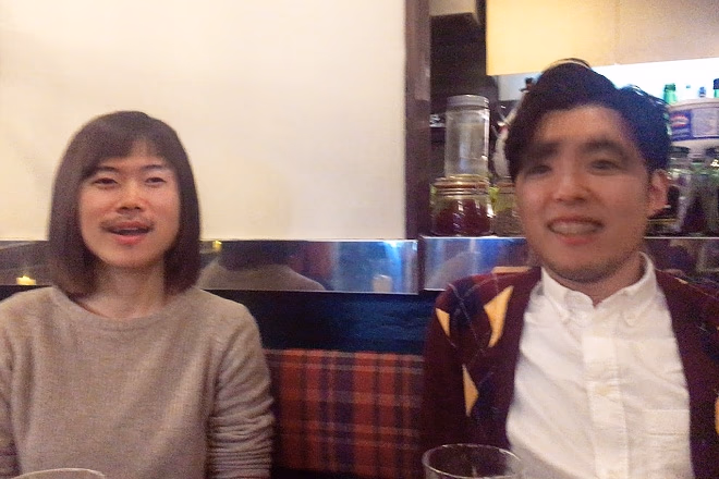 Photo by Tayama. The face of our leader, Kawaguchi (right), which perfectly matches my facial features (left), was well received.
