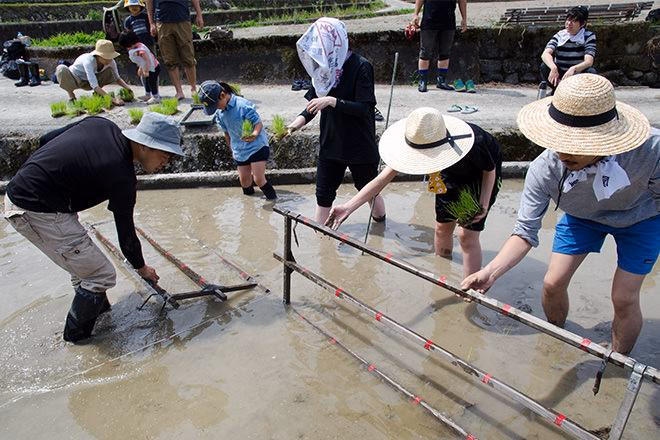 In late June, members living in Kamiyama, members from Yoyogi who were doing satellite work, and their children participated in a rice planting event.