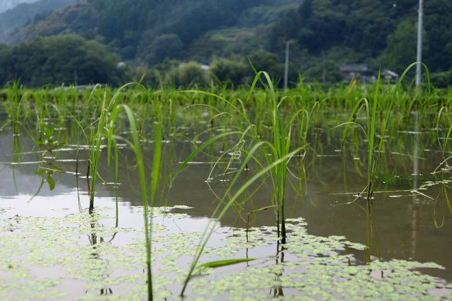 After the rice planting, a typhoon came and brought rain, so the water shortage that had been a concern was completely resolved.