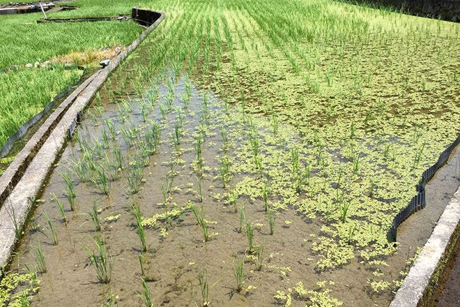 Apparently, the floating plants on the water surface are not a problem for the growth of rice. When I hear that, I find the bright green rice fields very beautiful.