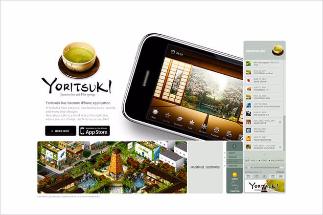 The website of HYBRIDWORKS inc. ( http://www.hybridworks.jp/ ), a small but elite team of designers and app developers.