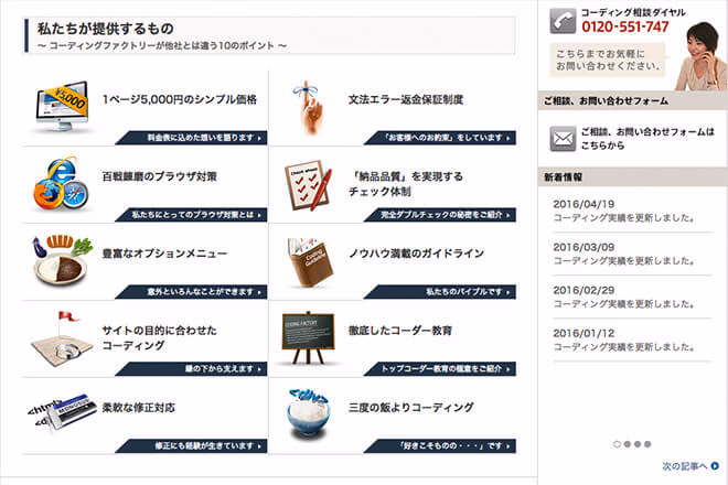 OnokiI also created icons for the Coding Factory website in this style, but it was quite a challenge. However, since all websites are similar in style these days, it might be a good idea to actually incorporate it into your design instead of just reminiscing about the past. Is flat design really okay for everything? It makes you wonder.