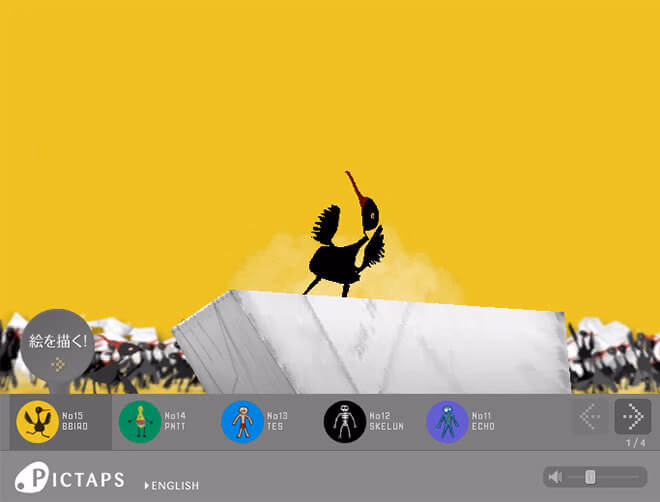 The service screen for PICTAPS ( http://roxik.com/v/0/ ). This web service was created by web designer Masayuki Kido, and allows you to make illustrations you draw on the screen dance.