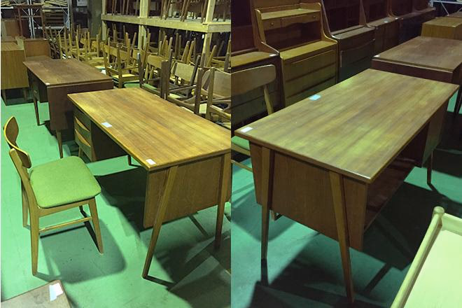 In the back yard of a Scandinavian furniture store in Isehara, Kanagawa Prefecture, we were shown furniture such as desks before they were repaired.
