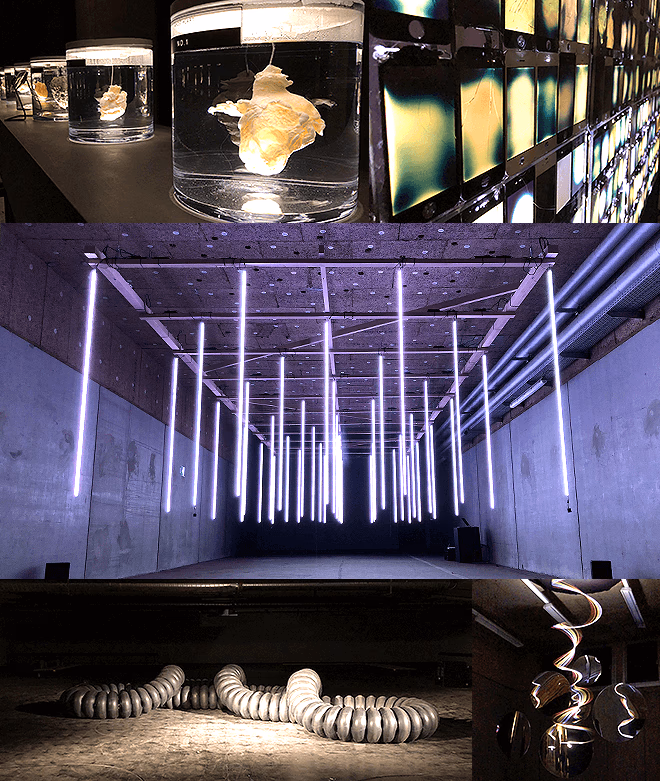 Post City is so large that you can't walk around it in a day, it's like a maze. Media art is displayed everywhere. I had always thought of media art as something that uses digital technology to communicate art using movement and light, but it seems that they have a broader understanding of art, from completely analogue works, to biotechnology projects, to intangible mechanisms.