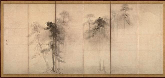 墨の濃淡で木々や月、日の光の様子が表現されていて、見ていると心が穏やかな気持ちになり、癒やされていく自分がいました。