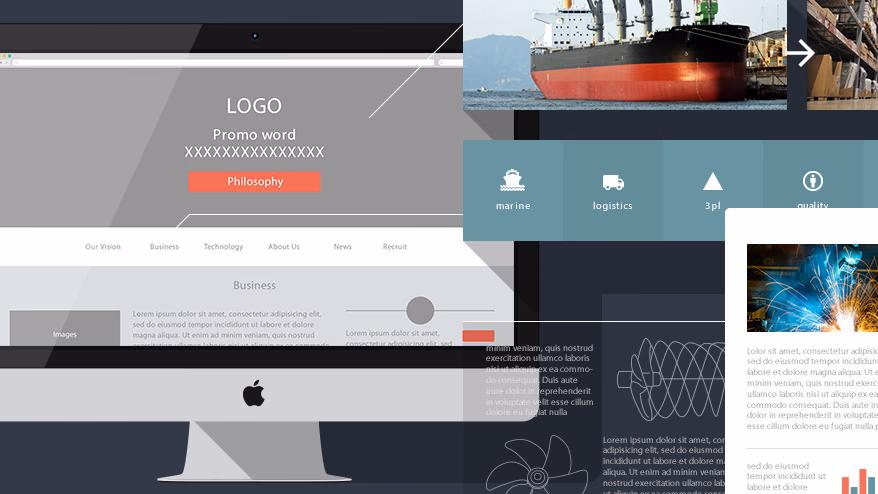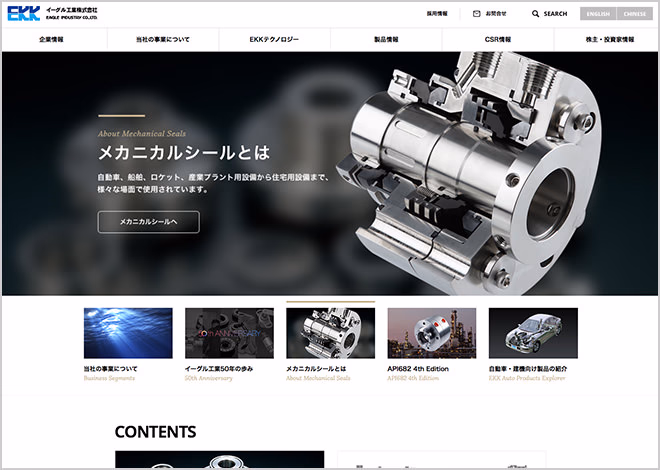 これらのメインビジュアルによって「顔」を印象付けたら、次は「中身」(=事業内容)を伝えることが重要になります。そこで、具体的に技術力やサービスを紹介する「事業コンテンツ」のデザインに力を入れていきます。