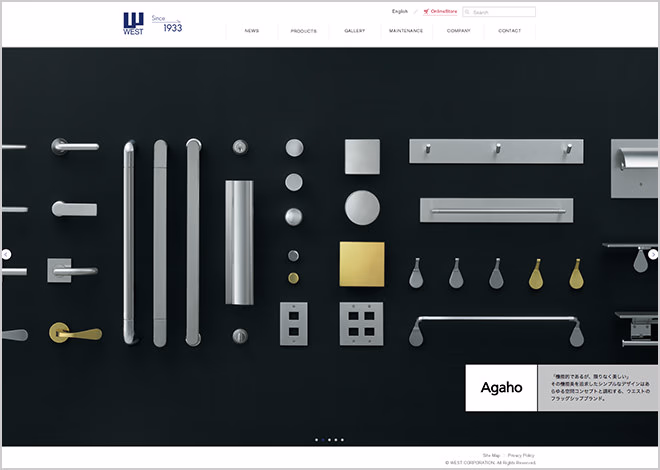 【他社制作事例】厳密にはBtoCも行っている鍵錠前などを製造・販売している企業。キャッチコピーも、コンテンツも廃したトップページは、製品の象徴的な写真のみで、美しさと技術力を表現している。