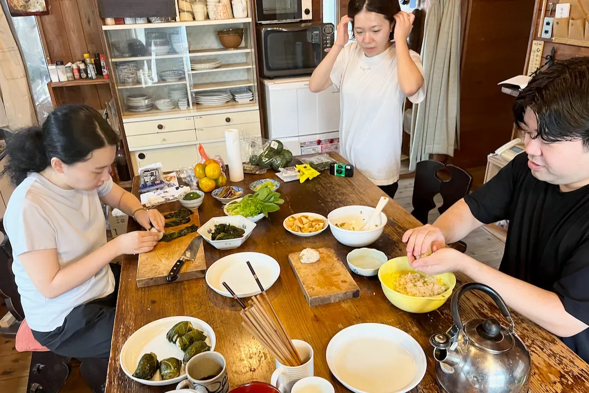 今回の社員旅行、それぞれの移動手段で熊野に集合するので、少し早めに来る人から、電車を乗り過ごしてゆっくり目に来る人まで、いろいろ。ちょっと早く来たメンバーとまずは白浜温泉の足湯につかりました。いやぁ、これがなかなか良かった。遅刻する人がいてくれたおかげで、普段はいけない魚市場みたいなところにも潜入できて美味しい海鮮丼をパクり。熊野は私の実家でもあるので、地元のスーパーで美味しそうな食材をあれこれ買って一緒に料理するのも楽しい時間でした。森の中で長時間歩いたり、気持ちいい川に共に足を浸したり、協力して料理をつくって食べてゆくなかで「あ、この人って、こういう人なんだな」という、その人そのものが見えてくる時間が、とても心地よかったです。僕はもとからモノサスにいる社員さんのことはけっこう好きなほうですが、仕事ではなく旅の側面で出会った仲間たちのことは、もっと好きになりました。こういう気持ちって、大事だな。