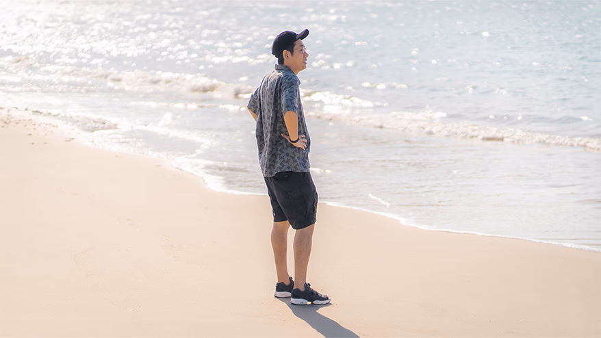 そしてこちらも久しぶりの更新となる「自由と責任」。ご紹介するのは、2013年に入社し、2021年から沖縄に移住してフルリモートで働くデザイナーの河原崎平さん。河原崎さんは、Web&デジタルソリューションの仕事を中心に、多くのデザイン制作を担っています。近年は、仕事でもプライベートでも、映像制作に挑戦し、賞を受賞したこともあります。
