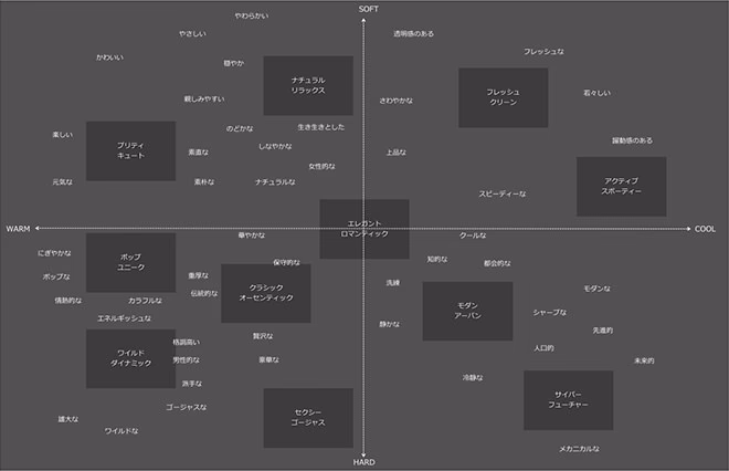 デザイン前にトーン&マナーの方向性の参考にするイメージマトリックス