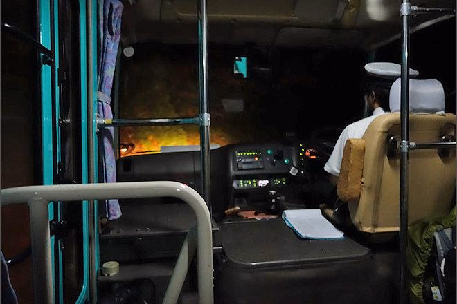 荒川登山口へ向かう、静かなマイクロバスの車内