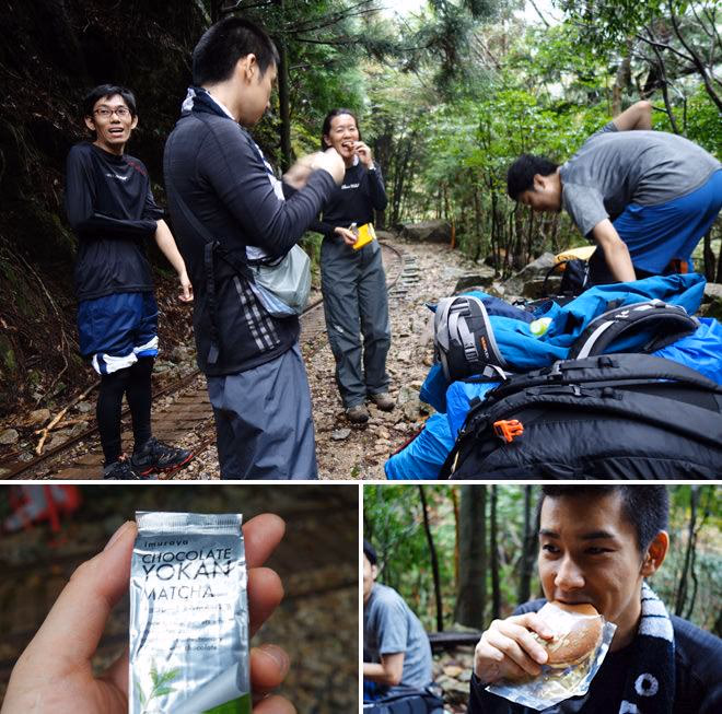 休憩時には、みんな思い思いの行動食を口にして、この後の登山道への活力にしています。