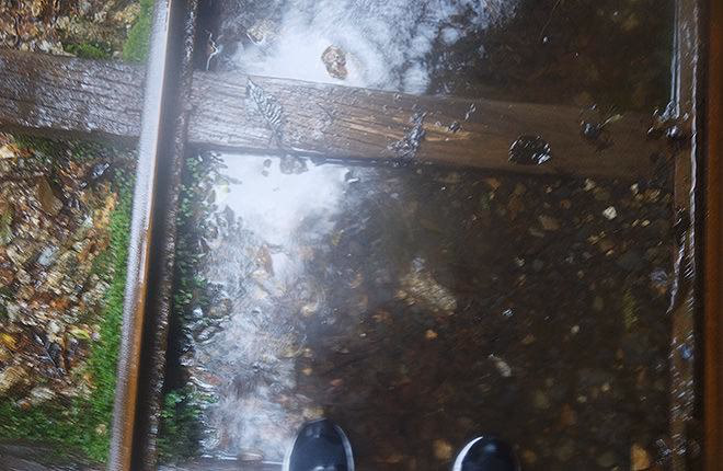 帰りのトロッコ道では線路に水が貯まってジャブジャブ状態。ゴアテックスの登山靴でも最後には中までビショビショになってしまいました。