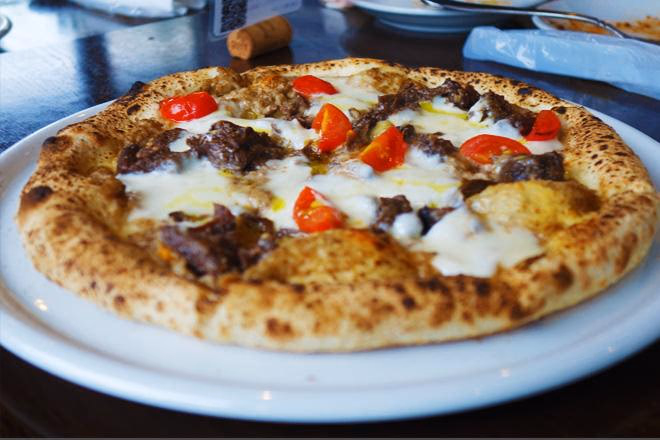 空港近くのイルマーレで食べられる、鹿肉のピザ。絶品でした。