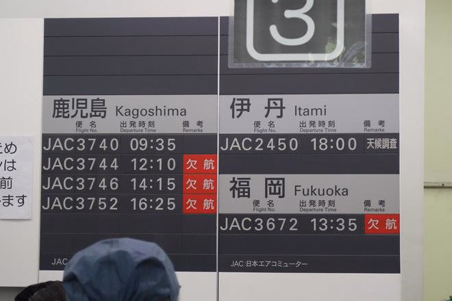 「鹿児島行き、3746便をご利用のお客様にお詫びとご案内を申し上げます・・・」