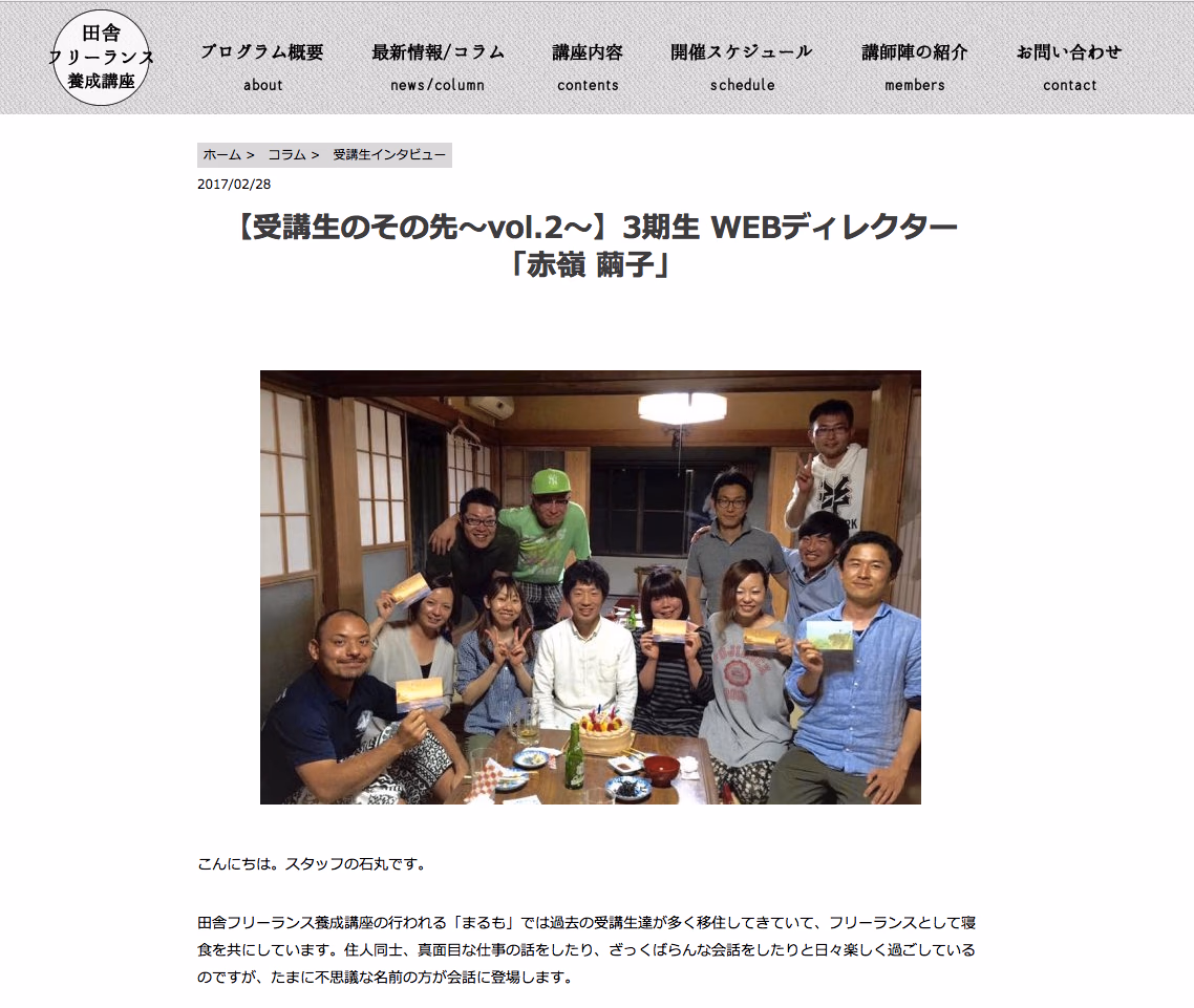 最近になって受講生のその後としてライターのまるじさんこと石丸さんに取材していただきました。田舎フリーランス講座のHPに掲載されています。