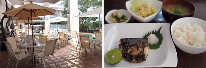 (左)解放感のあるテラス席(右)定食のバリエーションも豊かです