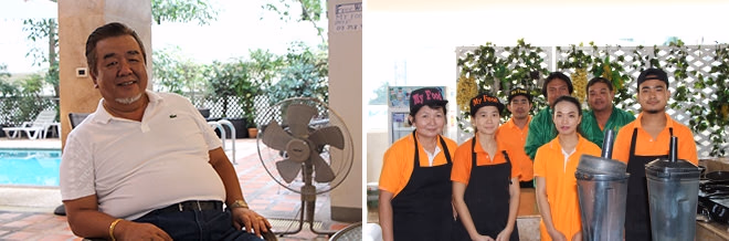 (左)大阪弁でいつも気さくに話してくださる柳沢社長(右)マイフードで働いているスタッフのみなさん