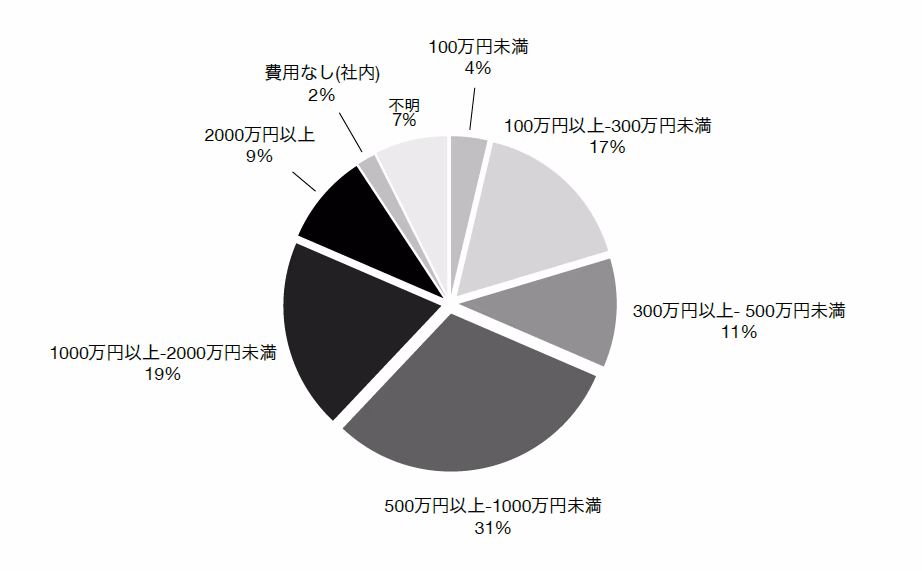 コーポレートサイトリニューアルにかける予算は、「500万円~1,000万円」が31%で最も多く、次いで「1,000万円~2,000万円」が19%、「100万円~300万円」が17%という順でした。こちらの調査結果から、リニューアルの予算相場は「500万円~2,000万円」であることがわかります。