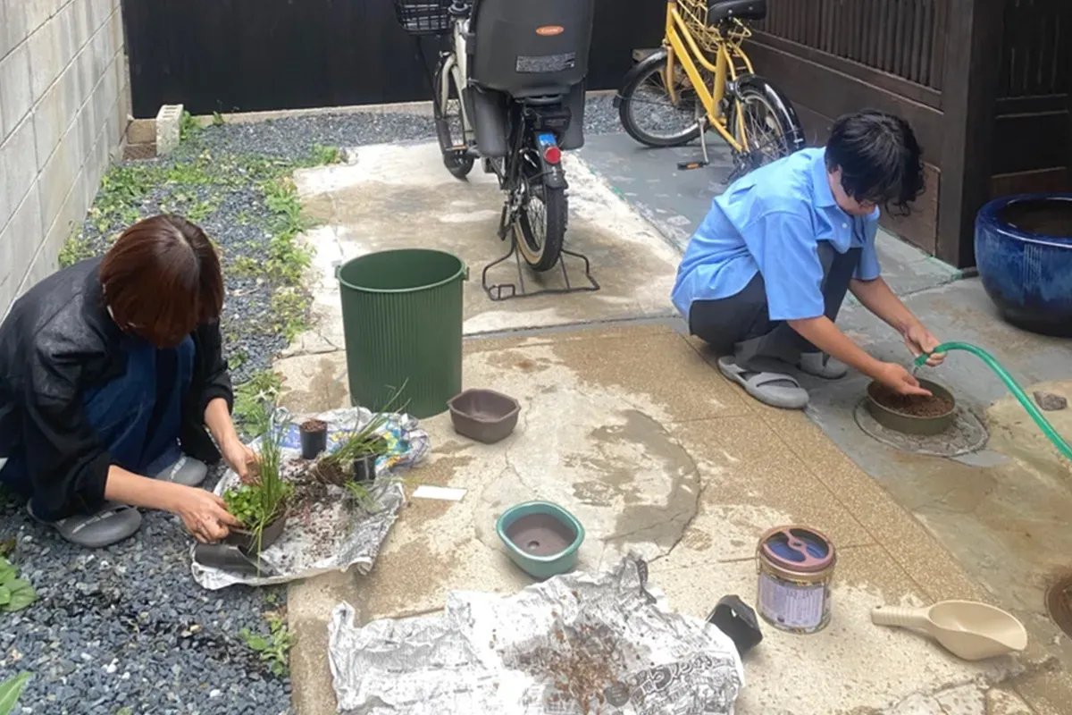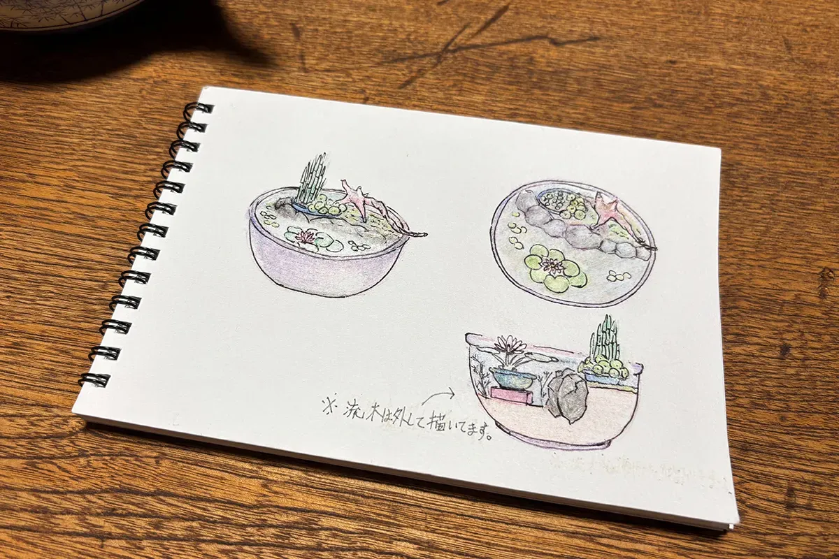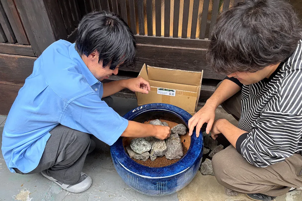 植える植物はどんなのがいいか、火鉢の中に入れる小さな鉢はどんなのがいいか、半田さんがいくつか案を出してくれました。