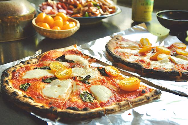 ピザ窯で焼いた本格ピザ。塾生みんなで協力してとても美味しくできました。生地を薄く均等に伸ばす作業がなかなか難しかったです。