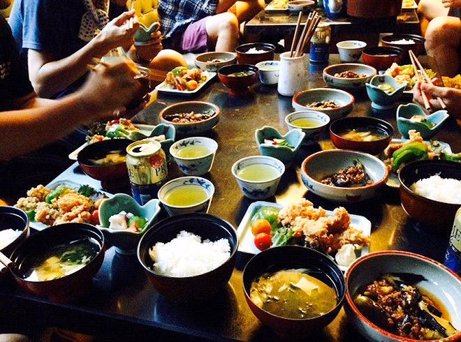 平日の昼はおむすびを、休日は塾生皆で手分けして料理を作っていました。