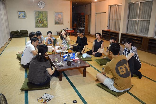 遅れて参加した塾生の歓迎会にて