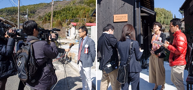 式のあとは、新聞やケーブルテレビなど、たくさんのメディアの取材を受けました。