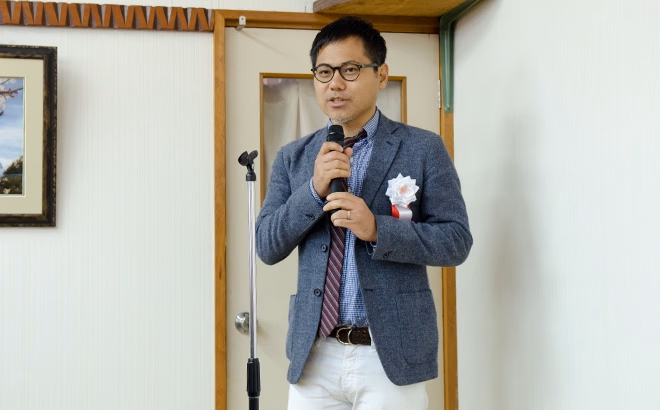 披露宴では、サテライトオフィス近くにお住まいの地家室の皆さんにもたくさんお集まりいただきました。椎木周防大島町長に「モノサスさんのような事業体が今後大島に増えていくと大島も大きく変わっていくのではと期待しています。周防大島でのオフィスの開設が、モノサスさんの大きな発展につながりますことをお祈りいたします」とお祝いのごあいさつをいただきました。その後、周防大島町町議会議長の荒川政義様の乾杯の発声でスタート!