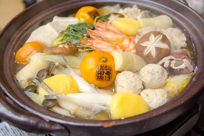 温泉のあとは、島名物の「みかん鍋」をいただきました!