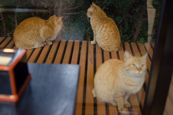 外では、美味しいものを狙う猫たちが目を光らせていました!(残念ながら、猫の餌やりは禁止)