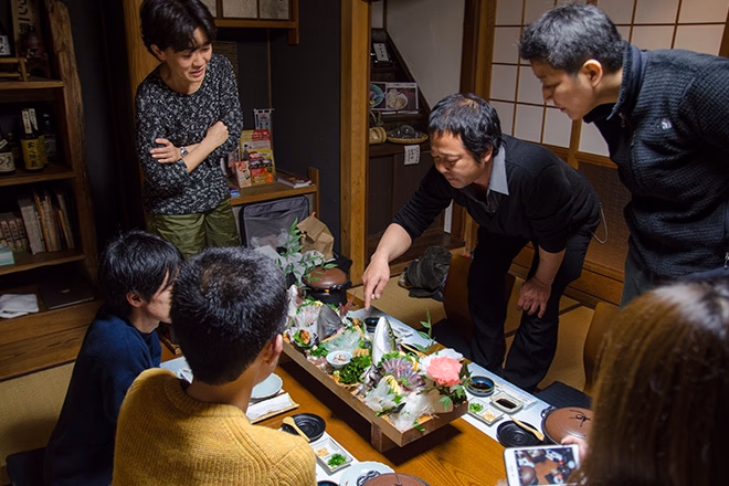 この日のお祝いのお料理には、地元で獲れた新鮮なお刺身と、鯛のお吸い物をいただきました。周防大島のお魚は新鮮で本当に美味しいのです…。