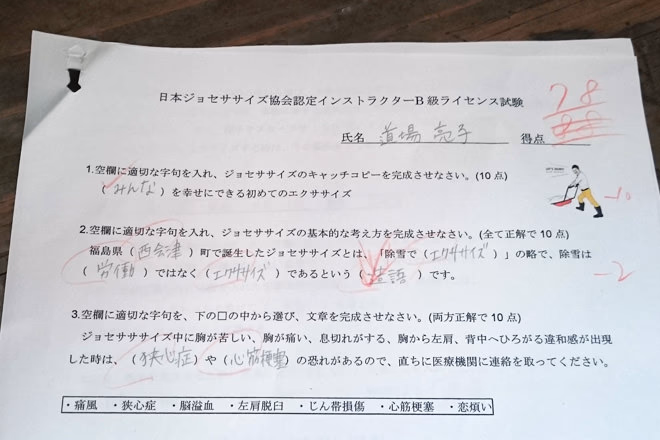 後から日本ジョセササイズ協会の方に自分の答案をみせてもらったところ、点数は78点。