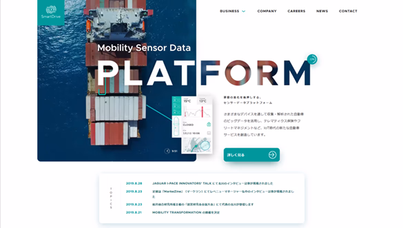 デザインはスマートドライブ様よりご支給頂き、モノサスではコーディングを担当しました。PC版のTOPページの動画メインビジュアルは、全て動画ではなくコーディング部分と動画部分がうまく一体化した仕様を再現しています。デザイン性の高いサイトを、ビデオチャットやSlack,Googleスプレッドシート,figmaなどの様々なツールを使用し、ディレクター,デザイナーとうまく連携しながら一緒に制作を進めました。また、画像・テキストは制作後に差し替えが発生した場合でもスムーズに対応できるよう、サイズを意識してコーディングを行いました。
